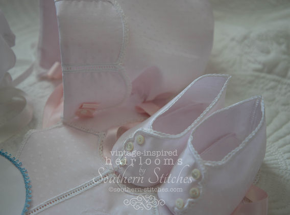 Custom-made Heirloom Bonnet, Bib and Booties Set